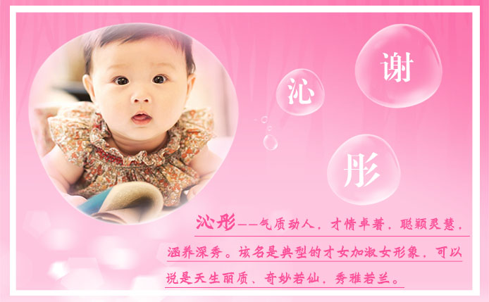 沁者,沁润,沁人心脾,形容女子的美好与气质给予人的清新爽朗的内心感受。明末清初·张岱《陶庵梦忆》中曰:“玉液珠胶,雪腴霜腻;吹气胜兰,沁入肺腑。”沁者,自然美好,心旷神怡;沁者,涵煦滋润,雅淑淳清;沁者,天性淳真,活泼可人;沁者,灵慧聪颖,吉祥顺意。