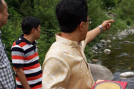 2013年6月22日,首席顾问高培淇博士在某公司主要负责人培训下,为其公司新项目选址进行实地堪舆。