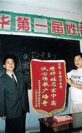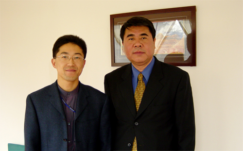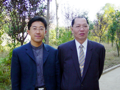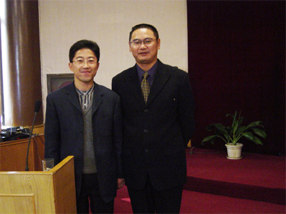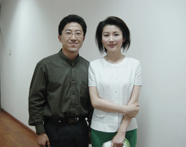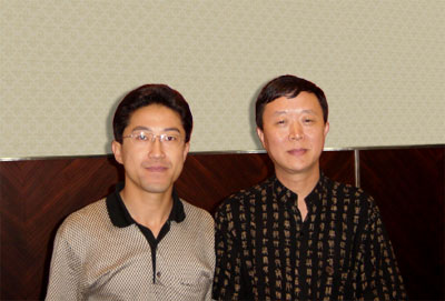 | 高老师与金正VCD营销副总裁胡海先生(“真金不怕火炼”、“苹果熟了”广告创意人)合影 |