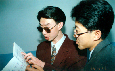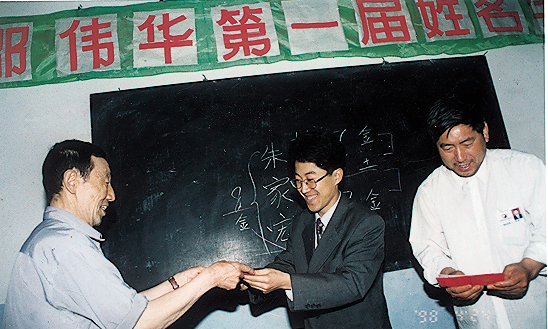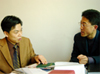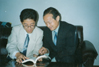 | 98年9月与美国著名企业经营管理专家詹姆斯·W·斯威德斯先生在探讨企业文化、高附加值战略及企业命名 |