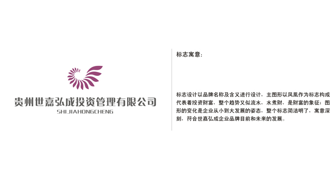 世嘉弘成,中正、和谐,用字现代、个性美好,文化内涵丰富,充满了美好寓意; 以“嘉”、“弘”两字来体现出投资管理行业的特征 ,赋予了企业一种完美向上、鸿图大展、有始有成的企业发展理念,同时又反映出了企业极强的凝聚力和感召力。名称发音上口,易读、易记,有利于企业名称的传播和升华。