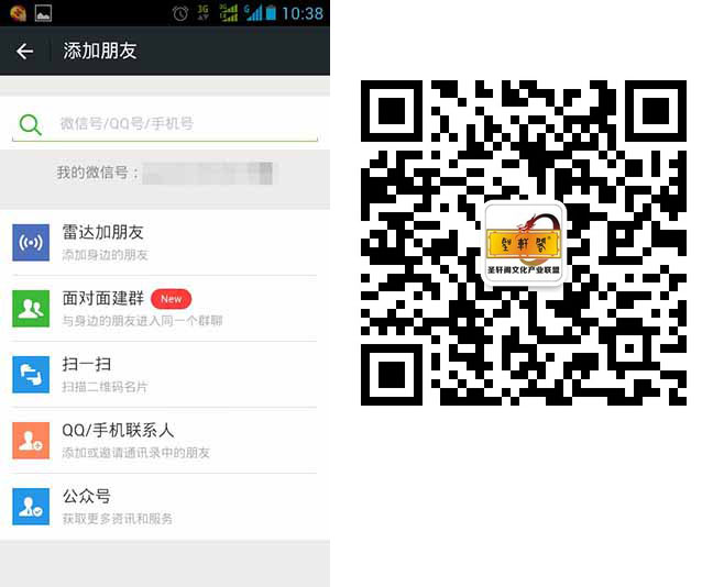 (3)输入微信号“sxg6699”或者微信名称“圣轩阁”,或者扫描右侧二维码;