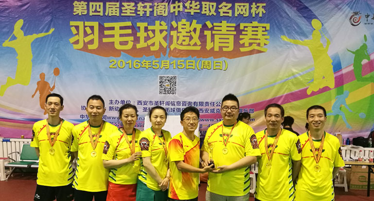 2016年5月15日,由圣轩阁【中华取名网】赞助举办的第四届“圣轩阁中华取名网杯羽毛球邀请赛”在天祥球馆圆满结束。此次参赛队伍一共32支队伍,参赛选手247人。经过激烈角逐,万家威克多火凤凰队勇夺冠军,飞鹰队荣